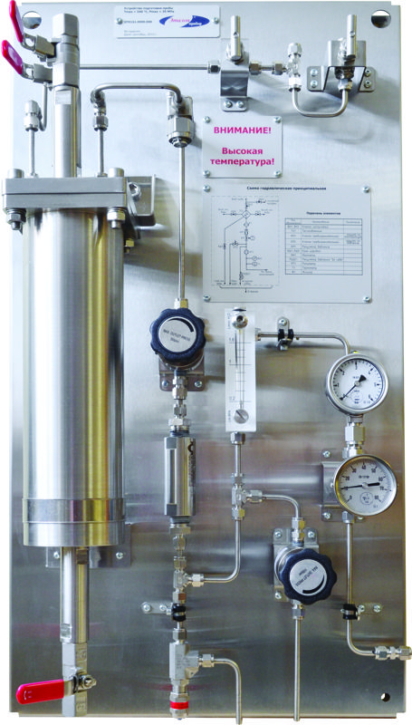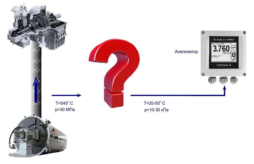 При проведении мониторинга параметров водно-химических режимов часто температура и давление среды в точках контроля могут быть весьма значительными, до 5400 С и 35 МПа, но при этом аналитическое оборудование поддерживает более низкие показатели. Для решения подобных задач применяются устройства подготовки пробы (УПП).