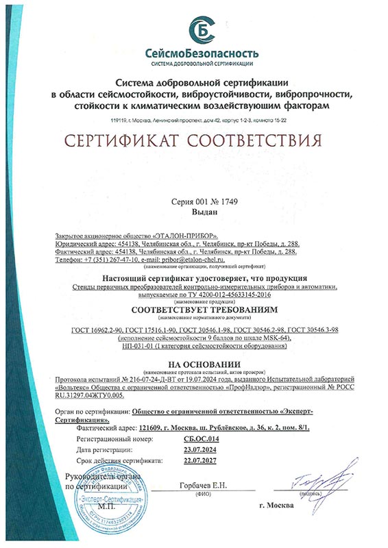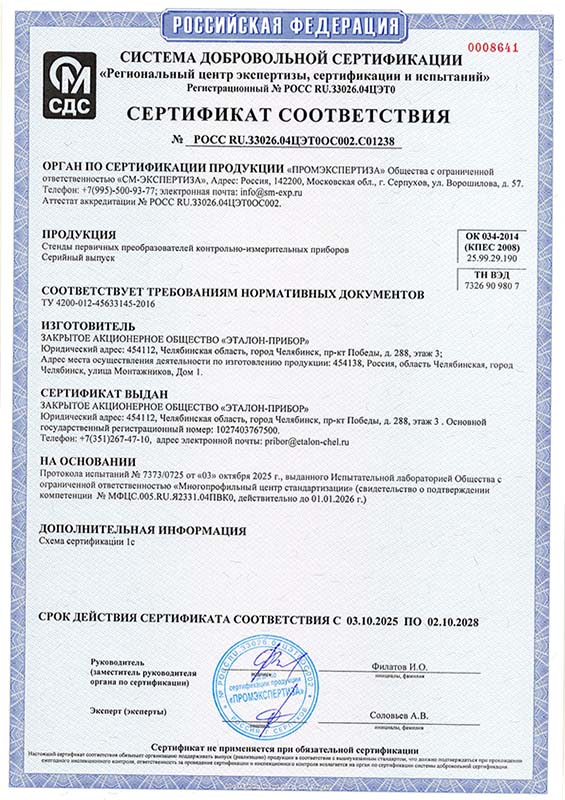 - > Спецификацию/перечень/опросные листы на стенды датчиков;